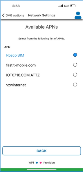 - Select the APN that is configured on your RoscoLive profile. .
