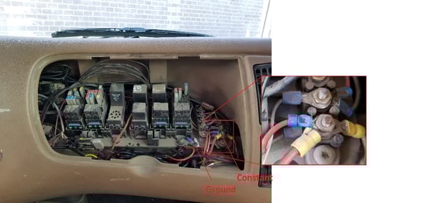 Spare Aux wires – Most international trucks have constant & ignition wires available from the factory for added electronics. Butt connectors can be used to crimp your connection securely |