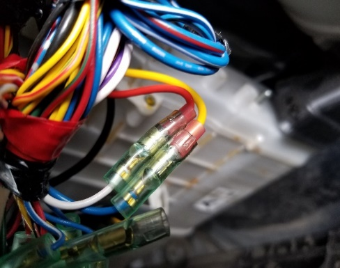 - Find the ignition (IGN) and power (BATT) wires, install the provided TTAP connectors (Red: 22-18 AWG, Blue: 16-14 AWG, Yellow: 12 AWG) onto wires with a pair of pliers.