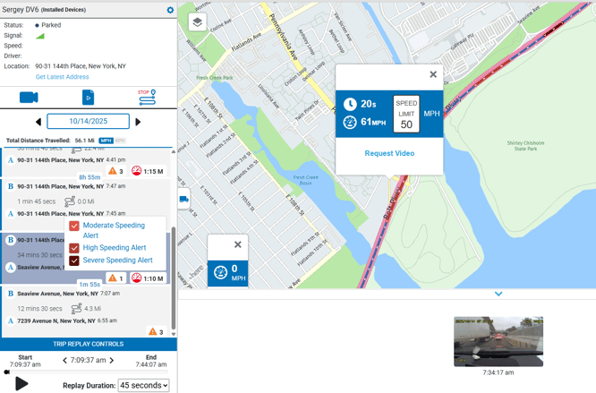 This feature helps promote safe driving habits by alerting drivers and providing clear visibility into speeding violations, differentiated by severity - Low, Moderate, High and Severe.