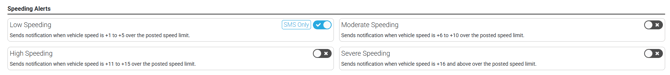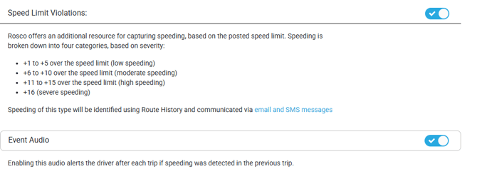 - After each trip, if speeding was detected, the driver will hear an audio reminder reinforcing safe driving behavior and encouraging them to obey speed limits on future trips. This feature can be enabled from the Fleet Settings as shown below: